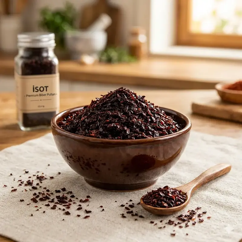 Yöresel üreticilerden temin edilen isot biberimiz, katkı maddesi ve koruyucu içermez. Doğal yapısını koruyan bu eşsiz baharat; kebaplardan çorbalara, salatalardan kahvaltılıklara kadar geniş bir kullanım alanına sahiptir.