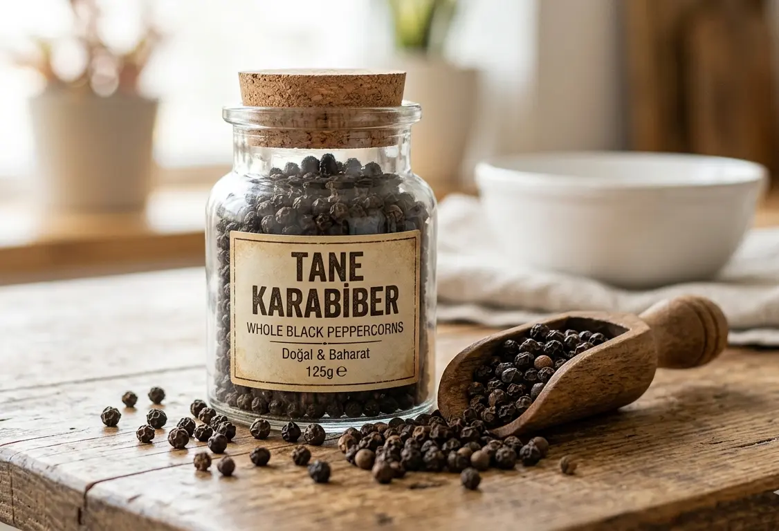 Tane karabiber, taze baharat, doğal karabiber, tane karabiber fiyatı, gurme baharatlar, öğütülebilir karabiber.